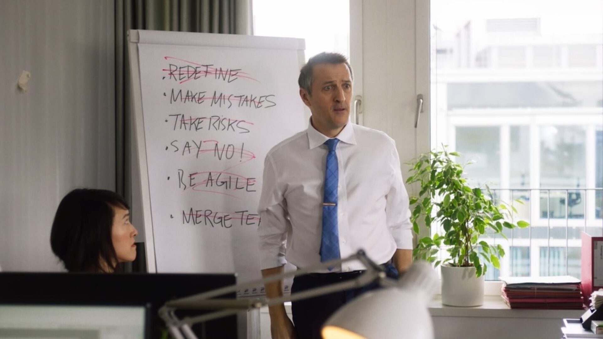 Vier ironische Filme entlarven die häufigsten Hindernisse: Selbstüberschätzung, Gewohnheiten, Ausruhen auf Erfolgen, Angst vor Veränderungen.