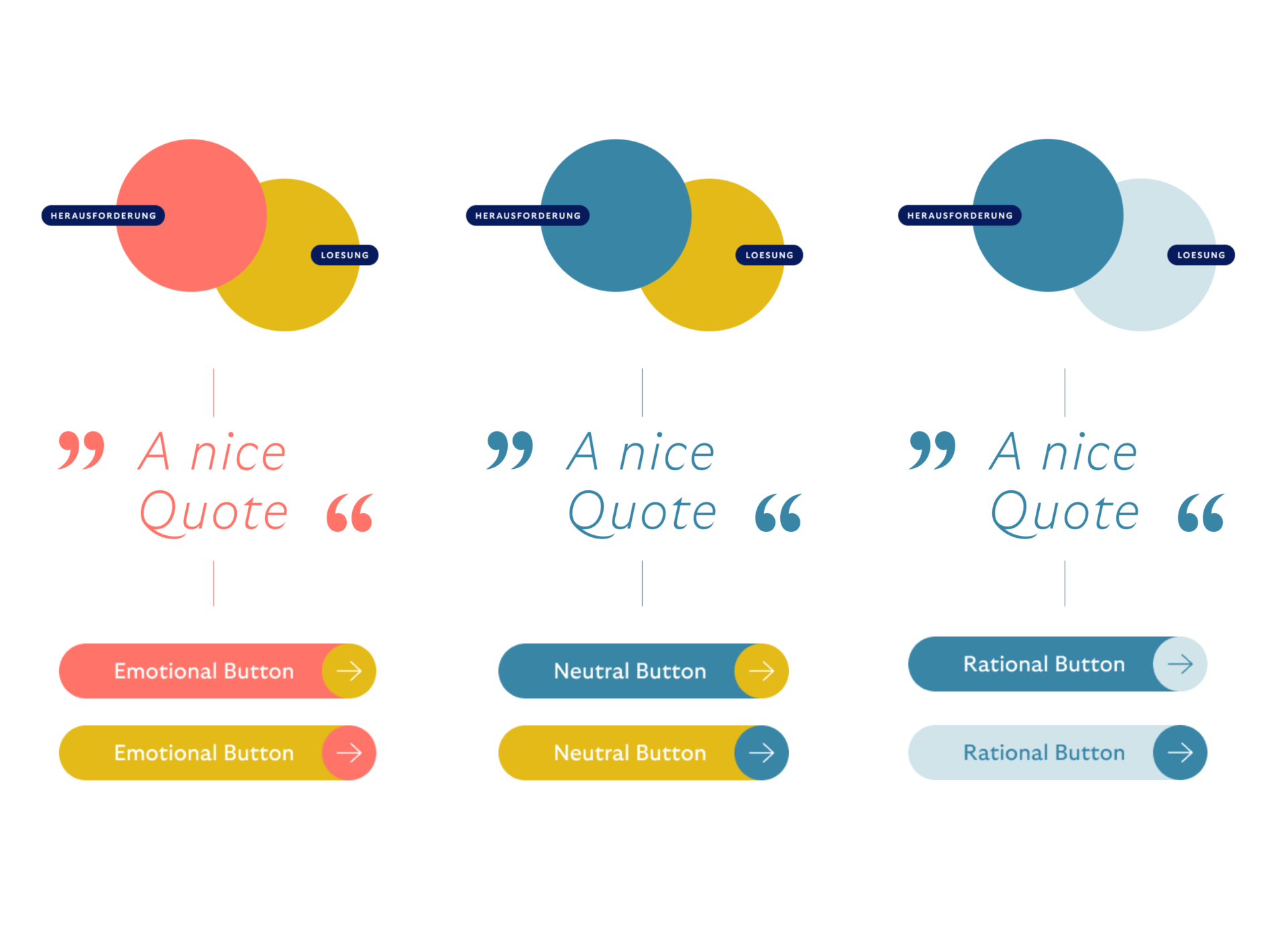 Assure Consulting vermittelt auf der einen Seite sehr rationale Themen, die auch dieser eher nüchternen Art von Kommunikation entsprechen sollte. Auf der anderen Seite zeichnen sie sich durch ein einfühlsames, persönliches Miteinander und Zusammenarbeiten aus. Um beides gleichermaßen kommunizieren zu können, entwickelten wir verschiedene Paletten, die im jeweiligen Kontext eingesetzt werden können