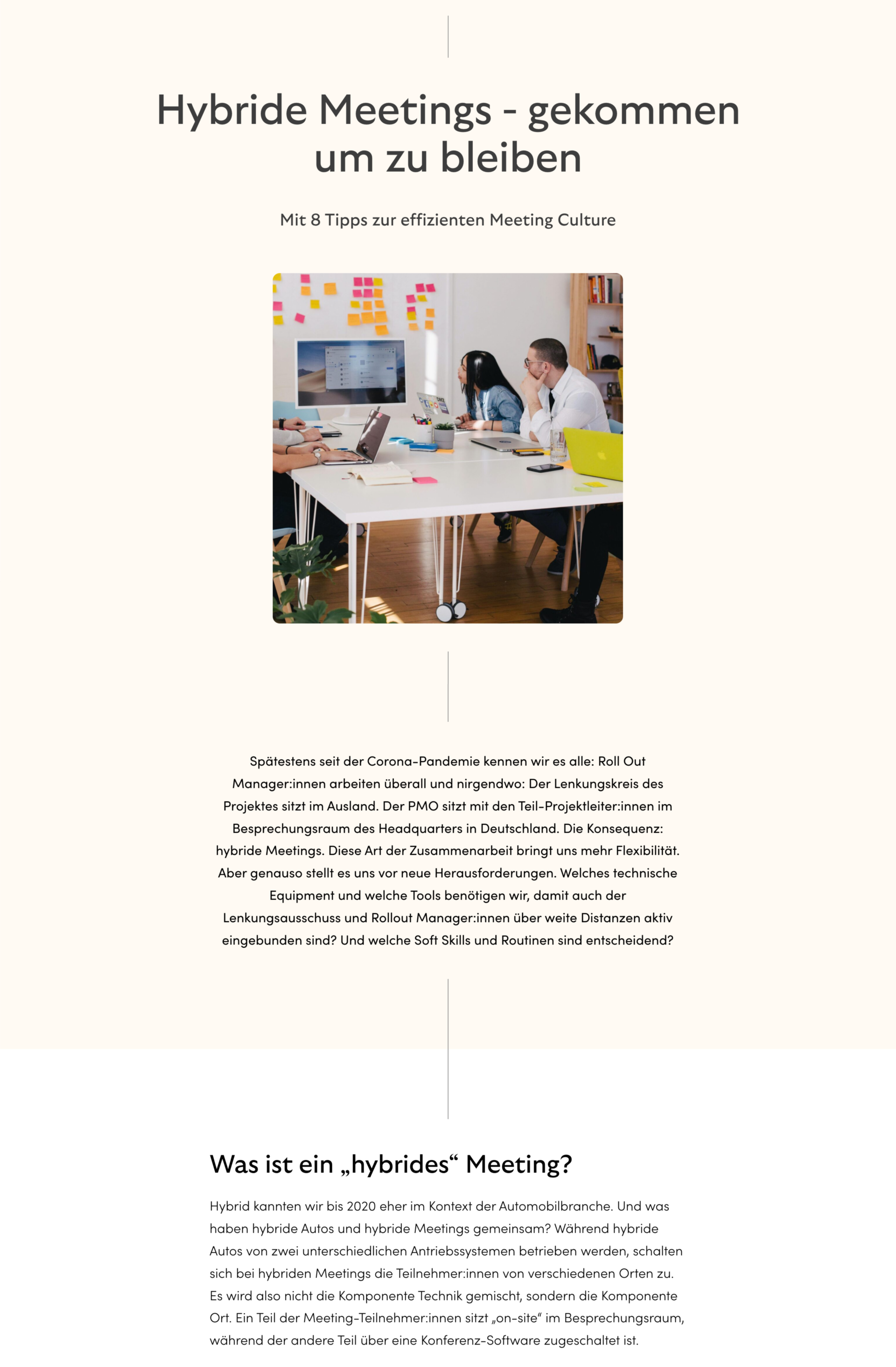 Emotional: Inhalte mit menschlichem Schwerpunkt, die eine lebhafte Stimmung vermitteln sollen, wie z. B. Erlebnisberichte, Meinungen und Unternehmenskultur.