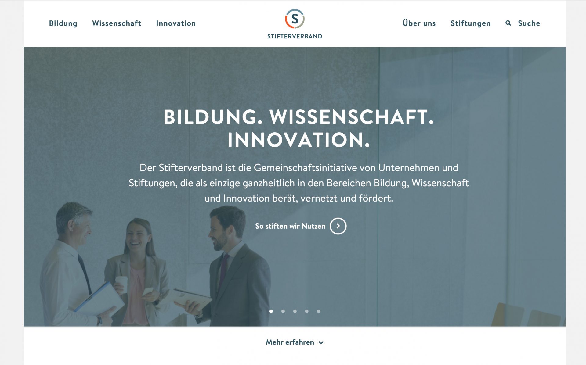 Die Zielgruppe des Stifterverbands ist breit: Allein die Mitglieder und Förderer setzen sich aus rund 3.000 Unternehmen, Stiftungen und Privatpersonen zusammen. Zusätzlich richtet sich die Arbeit des Verbands an Wirtschaftsvertreter, Forscher aus Hochschulen und Wissenschaft sowie die Politik und die interessierte Öffentlichkeit. Wie können also die Botschaften des Stifterverbands optimal an alle Stakeholder gespielt werden – und gleichzeitig ansprechend aufbereitet werden?