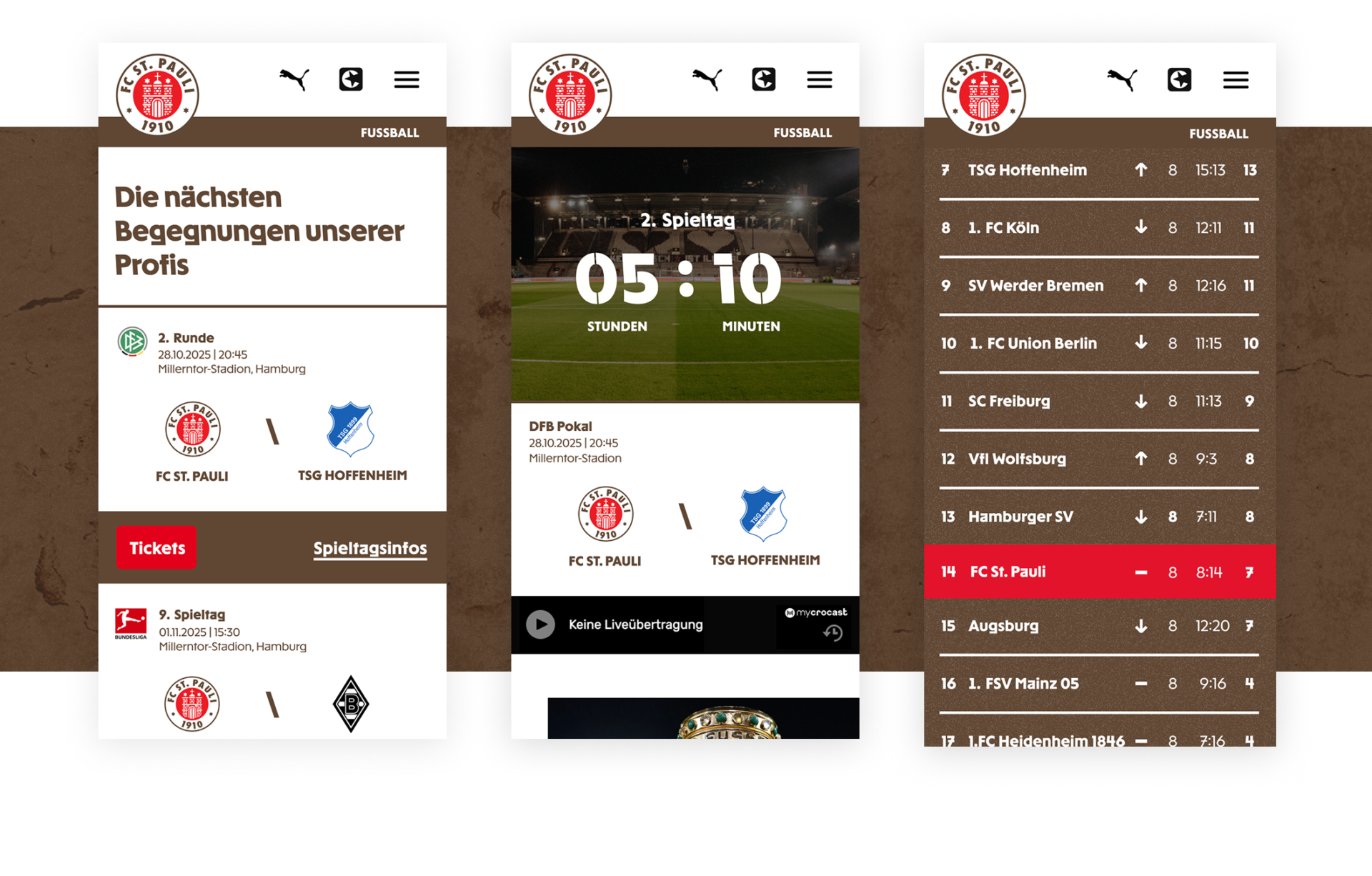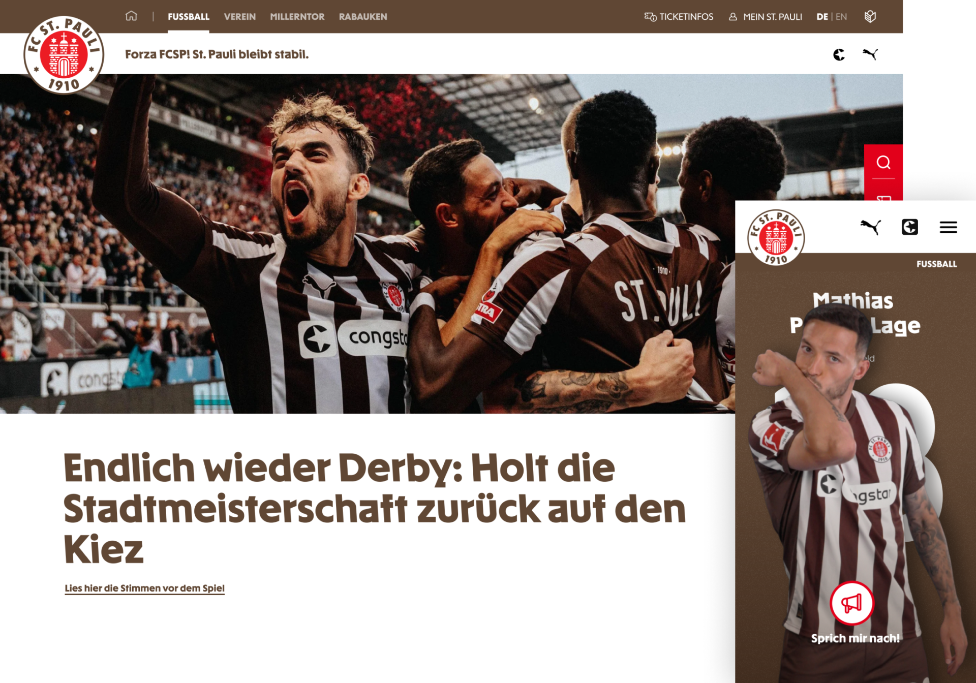 Der FC St. Pauli ist eine besondere Marke in der Bundesliga und weit mehr als nur ein Fußballclub. Mit 25 Abteilungen, einer leidenschaftlichen Fankultur, beliebten Nachwuchsprogrammen, der ersten Genossenschaft im deutschen Profifußball sowie zahlreichen gesellschaftlichen Initiativen, vereint die Website eine enorme inhaltliche Bandbreite.