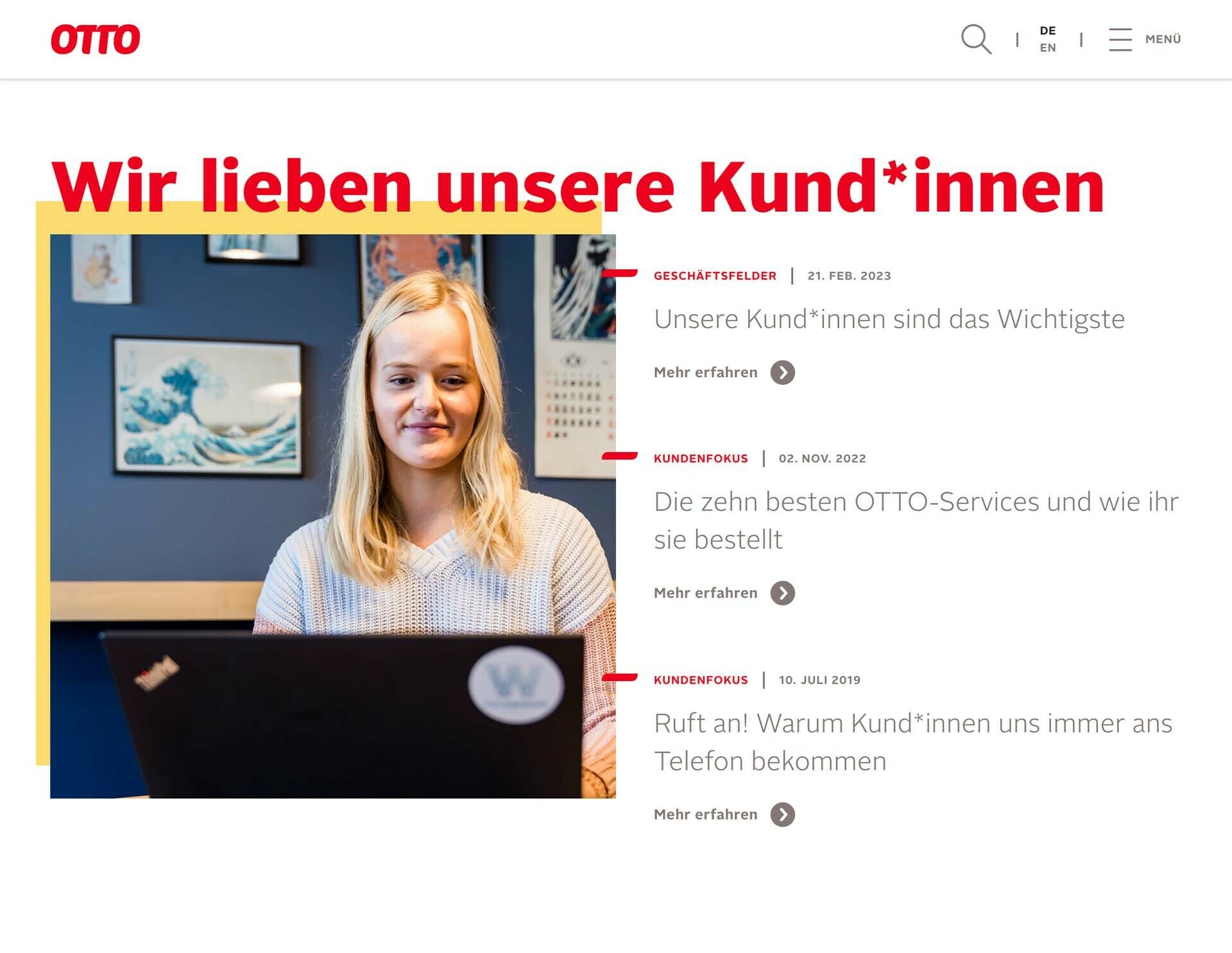 Seit 2018 entwickeln wir die Website gemeinsam mit OTTO immer weiter. Vom Newsroom mit Interaktionfeatures, zur geteilten Plattform aber im Multisite-Ansatz, hin zu einer gesammelten Unternehmenswebseite.