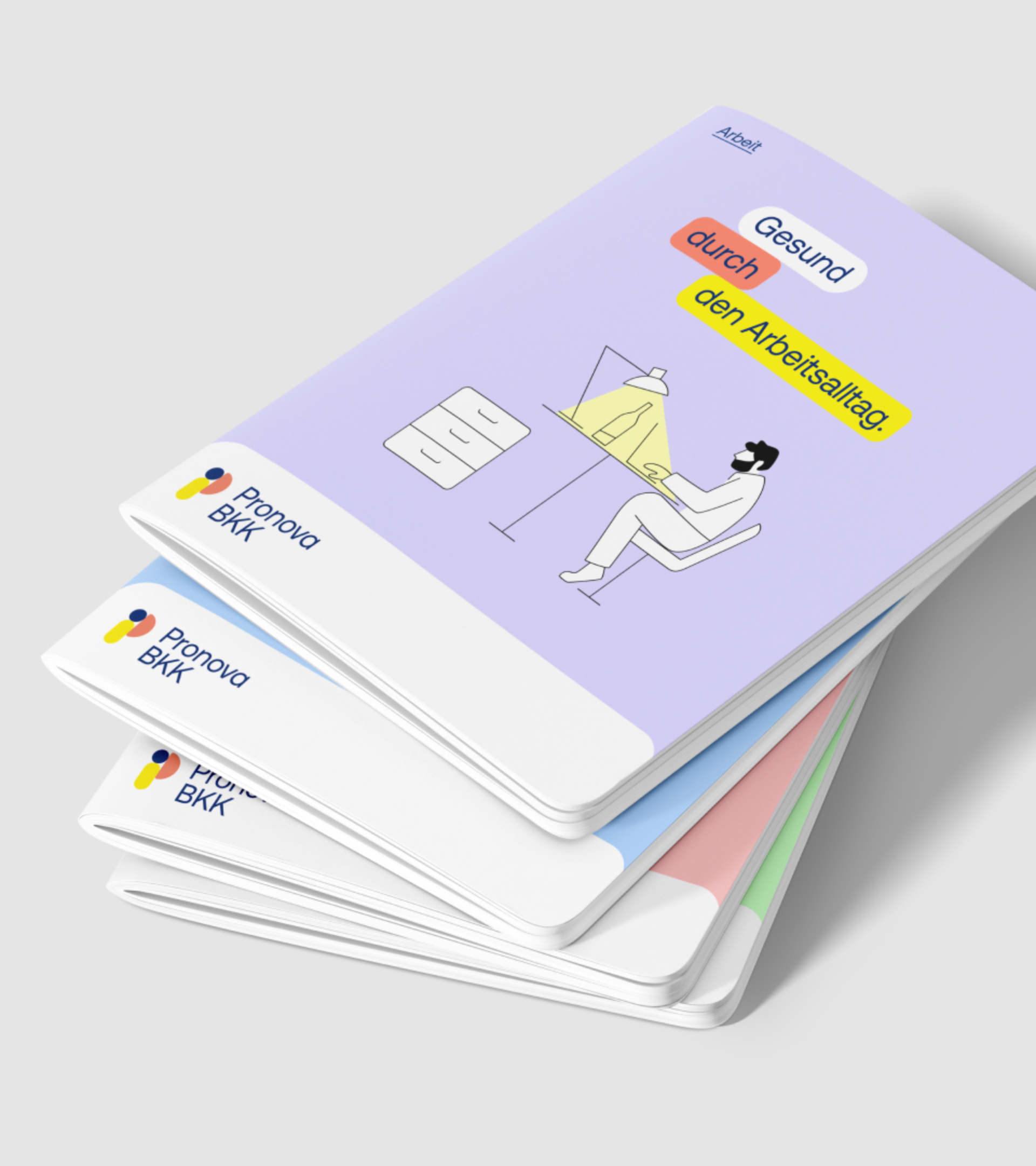 Heute findet der Großteil unserer Kommunikation digital statt, aber eben doch nicht immer. Für den Leichtigkeits-Fokus der Pronova BKK bot sich dabei ein viel ruhigeres Format, wie eine Broschüre an, welches viel Aufmerksamkeit und Liebe zum Detail braucht. Durch die Konzeption und Gestaltung neuer Broschüren schufen wir ein neues Aushängeschild der Marke. In der Imagebroschüre und verschiedenen Themen- und Angebotsbroschüren konnten wir uns gestalterisch und textlich ausleben und eine konzeptionelle Leitlinie schaffen.