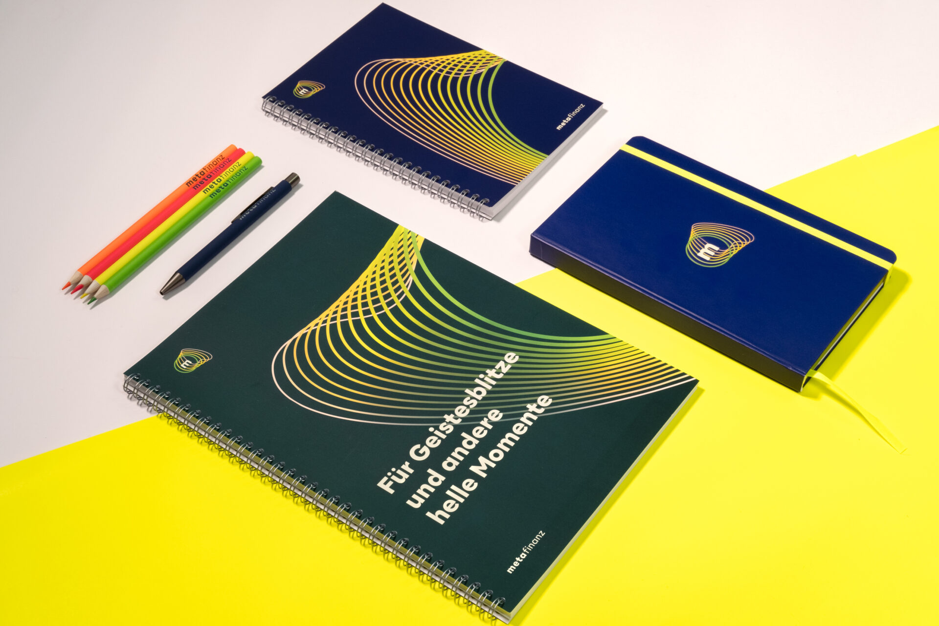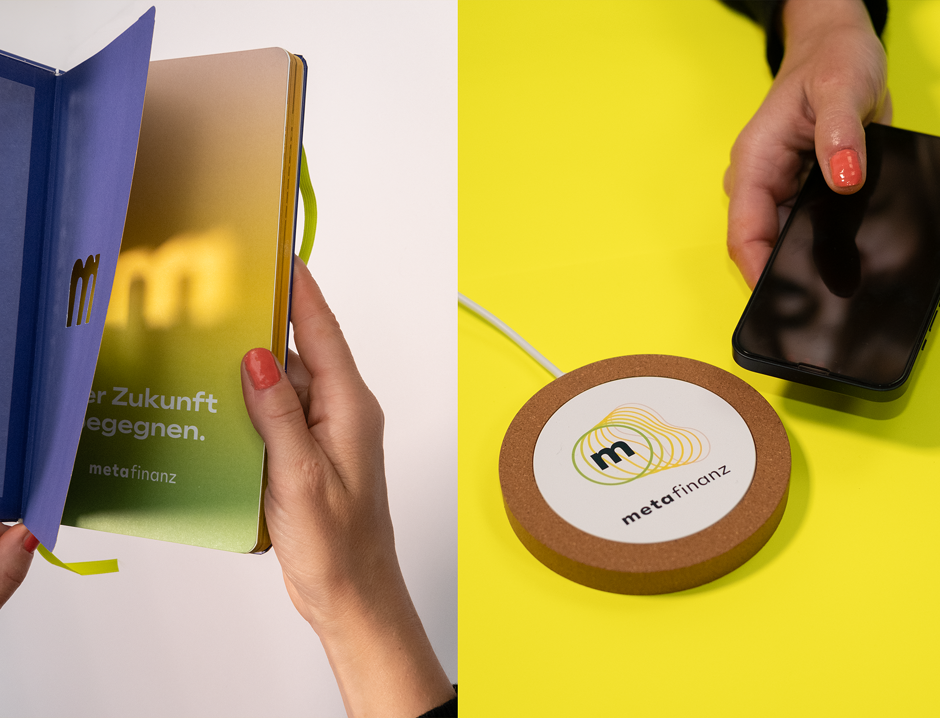 Seinen ersten großen Auftritt hatte das neue Branding im Rahmen des „Brand Launch Days“ am Münchner metafinanz-Standort. Hier konnten alle das neue Markengefühl an vielen Stellen sehen und spüren: Wir kreierten das Storyboard für einen kurzen Film, der die Strategie hinter der neuen Corporate Identity erläuterte. Außerdem erstrahlen jetzt im gesamten Gebäude das Logo und das Lichtelement, ein Brandbook beantwortet alle Fragen im Detail – und es gibt die neue Marke auch zum Tragen. Ein bewegender Start, der die Zukunftsfähigkeit von metafinanz für alle Anwesenden sichtbar ans Licht brachte!